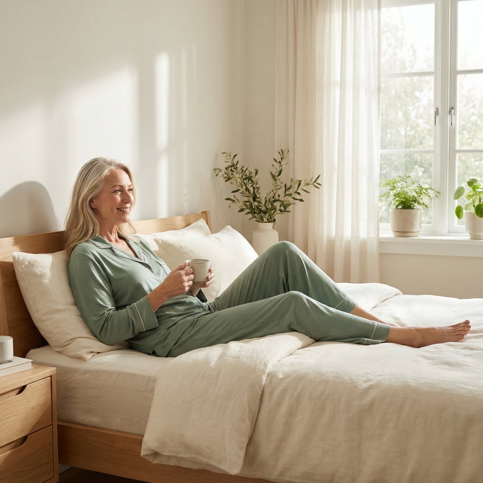 Wij ontwerpen ademende, flatterende kleding speciaal voor vrouwen die te maken hebben met opvliegers, nachtelijk zweten en lichamelijke veranderingen in de midlife — zodat je je elke dag zelfverzekerd en comfortabel kunt voelen.
